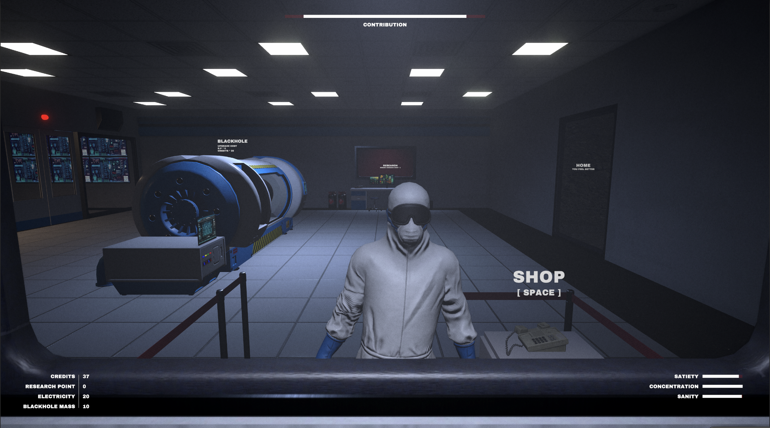Maintaining the scientist’s health and stability is crucial to advancing research and growing the black hole’s mass, which in turn generates credit points.